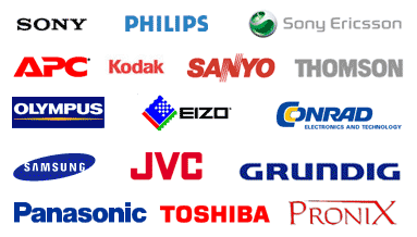 Sony, Philips, SonyEricsson, APC, Kodak, Sanyo, Thomson, Olympus, EIZO, Conrad Electonic, Samsung, JVC, Grundig, Panasonic, Toshiba, Pronix a mnoho dalších.
